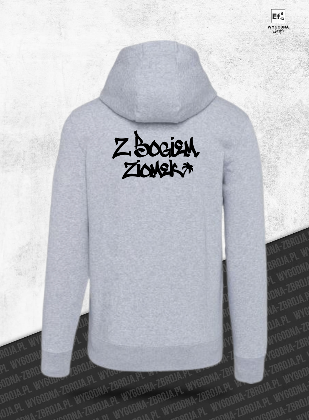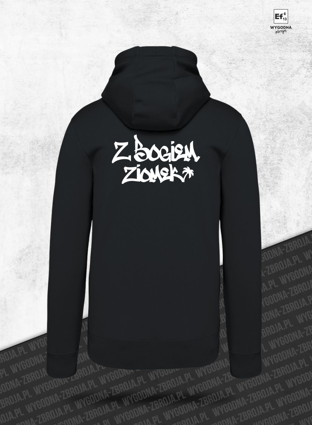 Na plecach znajduje się wyraźne logo „Z Bogiem Ziomek”, które niesie prosty przekaz: